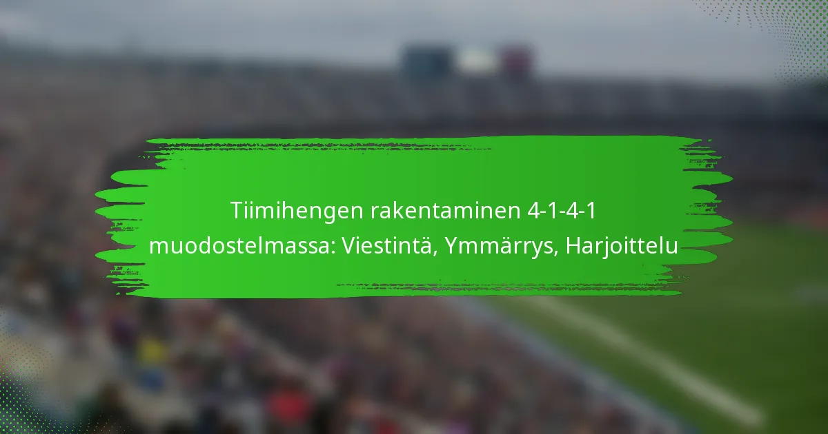 Tiimihengen parantaminen 4-1-4-1 -muodostelmassa edellyttää kohdennettuja harjoituksia, jotka parantavat viestintää, ymmärrystä ja luottamusta pelaajien kesken. Tehokkaat harjoitukset voivat edistää tiimityötä ja luoda yhtenäisen joukkueen kentällä.