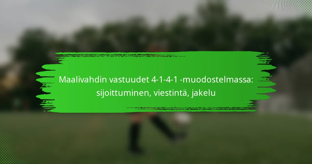 4-1-4-1 -muodostelmassa maalivahdilla on keskeinen rooli, joka sisältää tehokkaan sijoittumisen, selkeän viestinnän ja tarkan pallonjakelun. Nämä vastuut ovat olennaisia vahvan puolustuksen varmistamiseksi ja sujuvien siirtymien mahdollistamiseksi hyökkäykseen. Tehokkaalla viestinnällä joukkuekavereiden kanssa ja strategisten jakelumenetelmien käyttämisellä maalivahti auttaa ylläpitämään joukkueen rakennetta ja parantaa kenttäpelaajien kokonaissuoritusta.