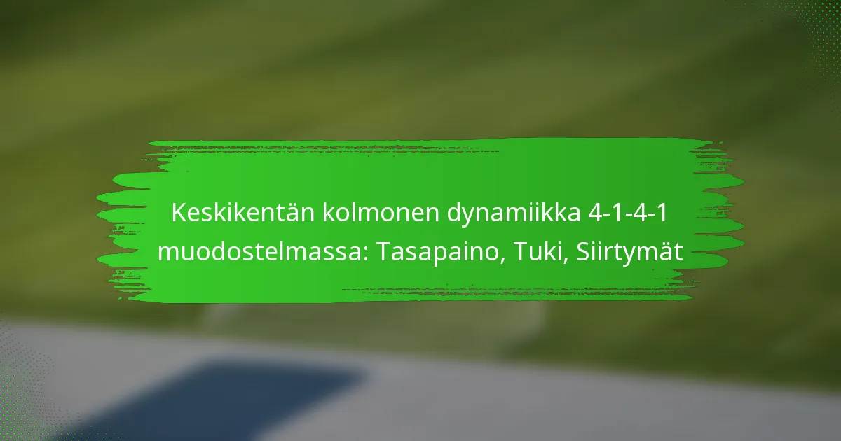 Keskikenttäkolmikko 4-1-4-1 -muodostelmassa ylläpitää tasapainoa varmistamalla tehokkaan välimatkan, tuen ja koordinoinnin pelaajien kesken. Tämä tasapaino on ratkaiseva sekä puolustuksen vankkuuden että hyökkäyksen sujuvuuden kannalta, mikä mahdollistaa joukkueen sujuvan siirtymisen pelin eri vaiheiden välillä.