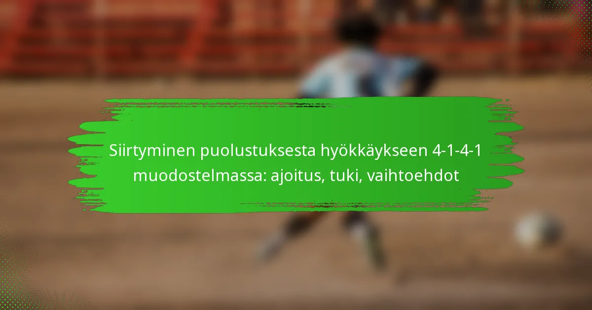 Siirtyessä puolustuksesta hyökkäykseen 4-1-4-1 -muotoilussa joukkueet tekevät usein kriittisiä virheitä, jotka voivat heikentää niiden tehokkuutta. Keskeisiä virheitä ovat pelaajien liiallinen sitoutuminen, koordinaation puute ja vastustajan heikkouksien tunnistamatta jättäminen. Näiden ansojen välttäminen on olennaista onnistuneelle siirtymiselle.